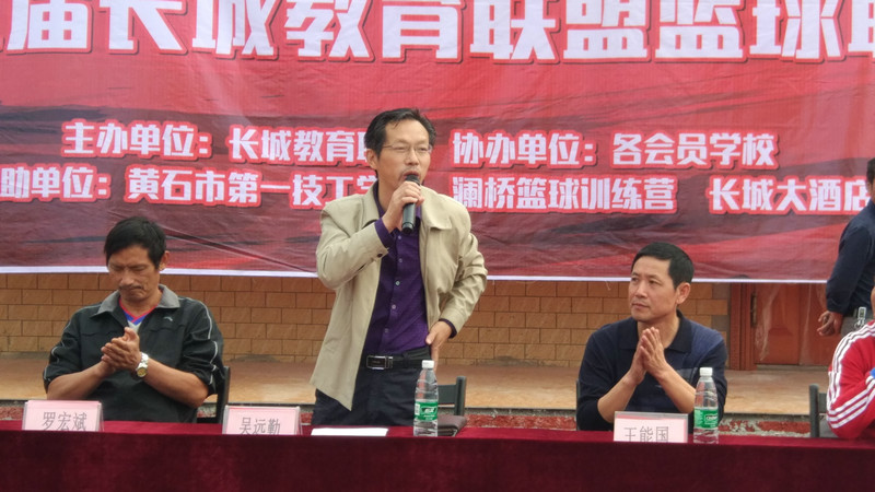 2016年10月11日上午9:00,阳新县第三届“技能杯”长城教育联盟篮球联赛开幕式在我校新足球场举行,教育局领导、长城教育联盟篮球联赛负责人及各会员学校参加了参加了开幕式。