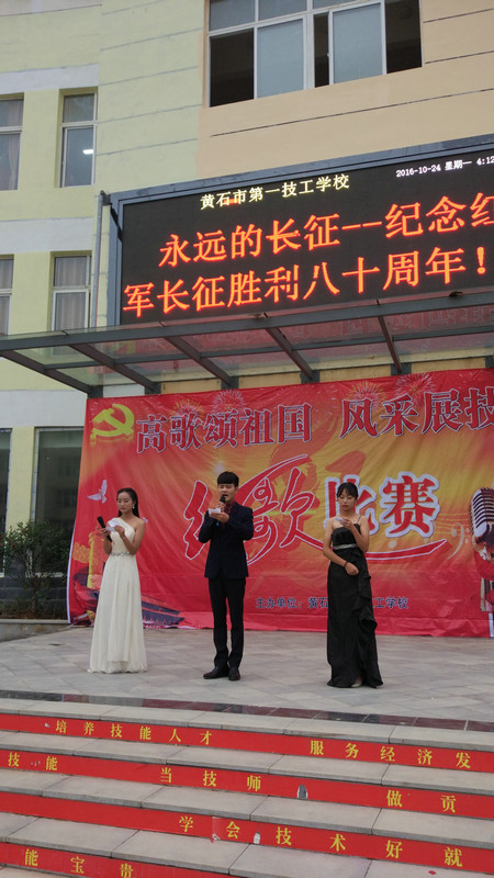 10月24日,我校全体师生汇聚在行政楼广场前,举行了一场热闹非凡、激情澎湃的红歌大合唱比赛。在学生科的精心组织下,在主持人的精彩主持下,在领导们的全程观看中,在全校16各班级精彩纷呈的大合唱表演中,我们这唱红歌会让全体师生感受到了红军长征的深远意义,感受到了我们新校区崭新的风貌,感受到了我们黄石一技校未来发展的远大前景!