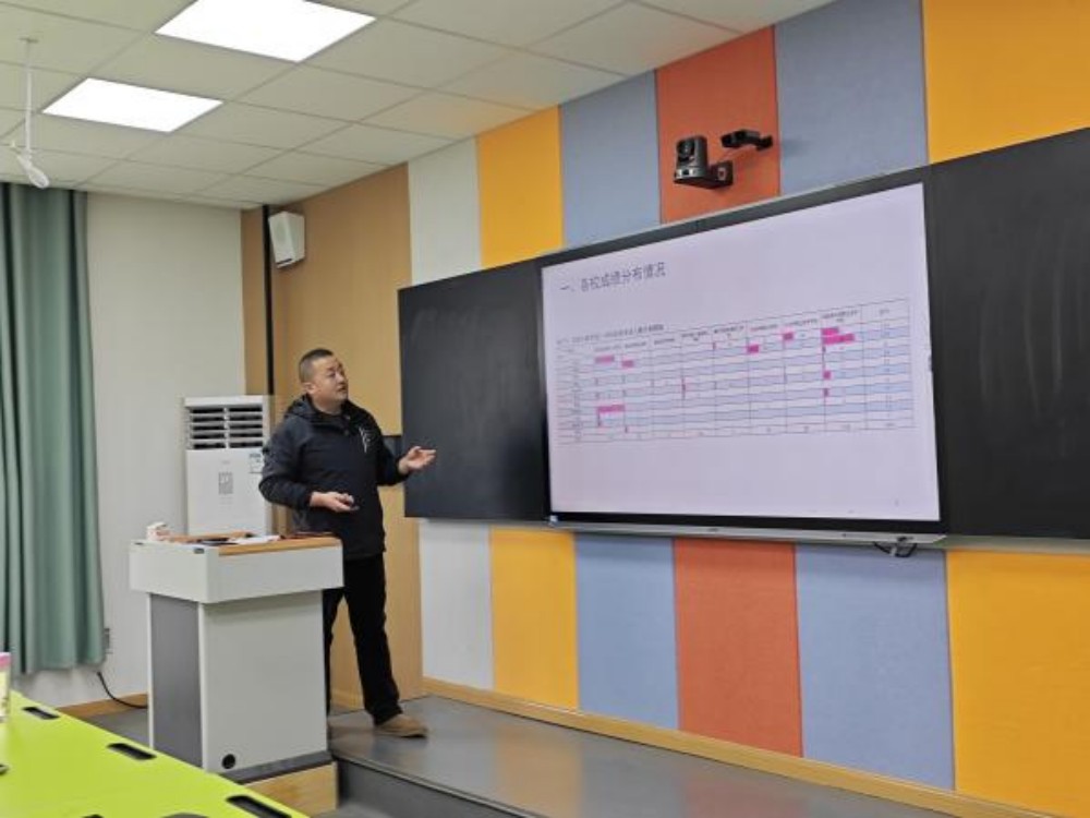 会议由教务处做此次联考质量分析。教务处详细汇报了本次月考和期中考试的整体情况,包括考试的组织、实施过程以及取得的成绩和存在的问题。