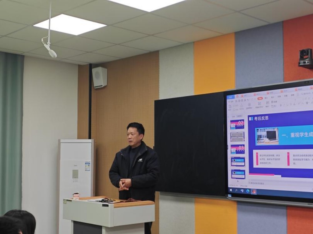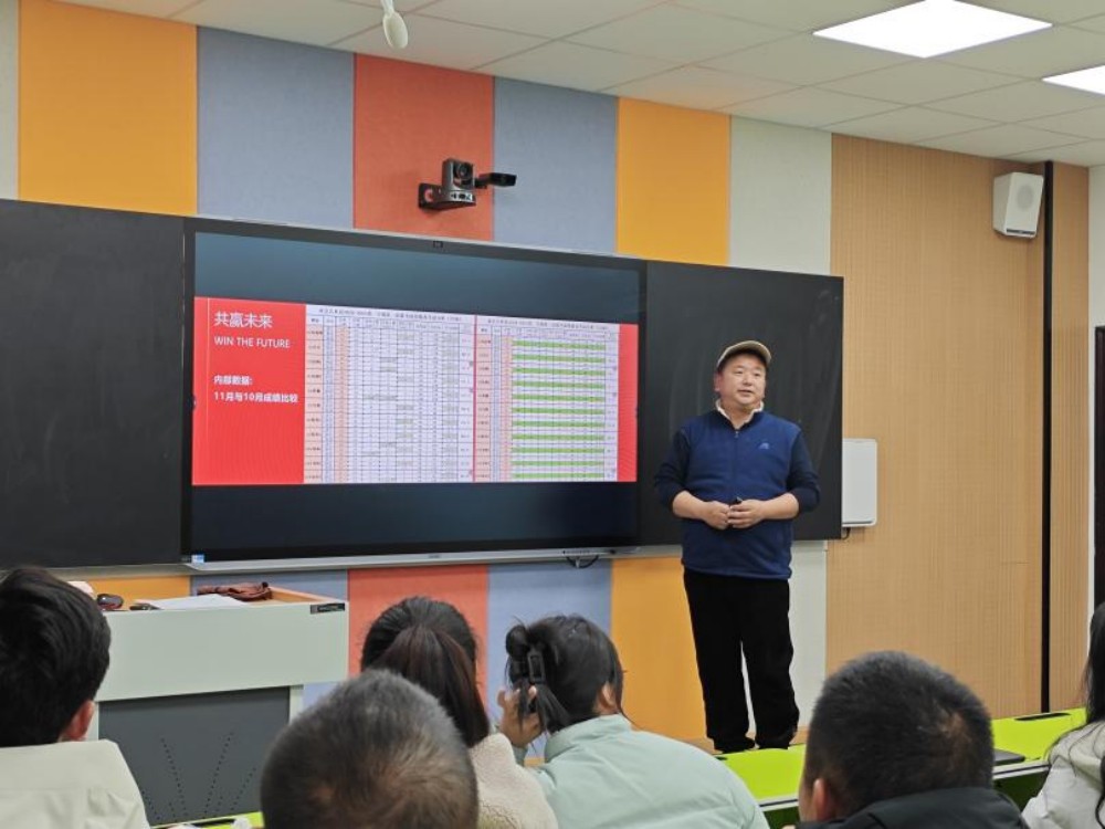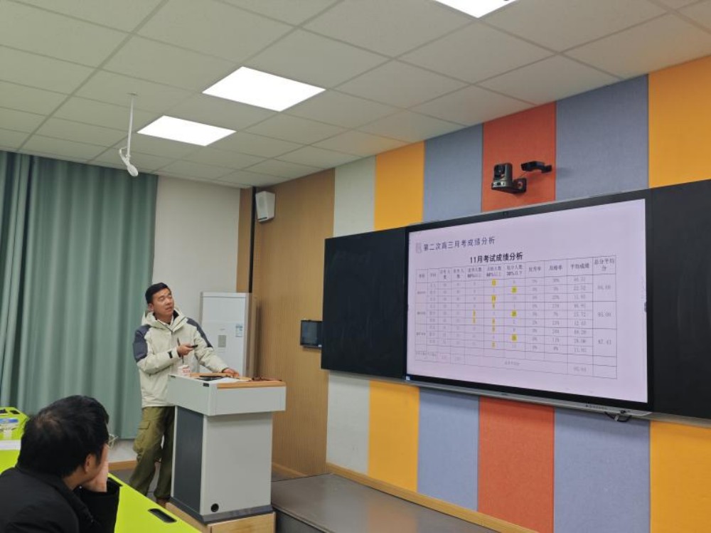 各系部对10-11月月考做对比发言。四系部对于10月与11约的成绩进行了各个方面的比较,在均分以及头部生人数、尖子班变化情况都做出了相应的分析与比较。