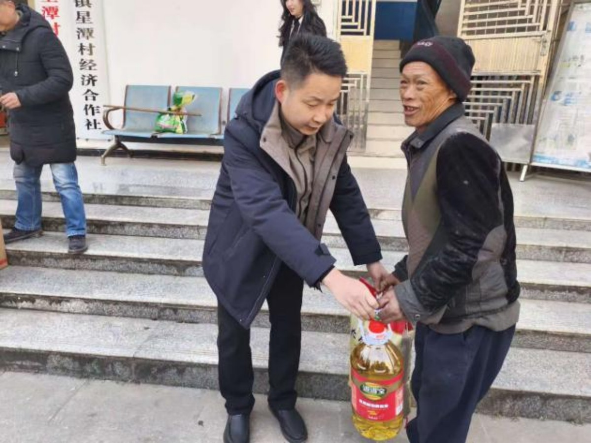 当日上午9时许,柯强书记一行带着精心筹备的大米、食用油等慰问品抵达星潭村。随后,参与慰问的干部职工分组深入各家各户。每到一处,工作人员都与村民亲切攀谈,关切询问他们的身体状况、家庭收入情况以及生活中面临的困难,认真倾听村民心声。